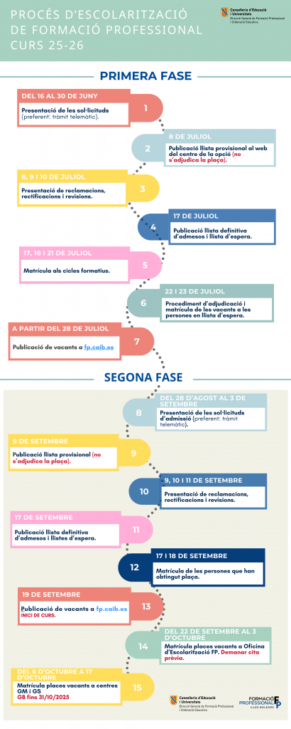 Aquí trobareu la informació per a formalitzar la matrícula als diferents graus de formació professional dels alumnes admesos a la llista de dia 17 de juliol.